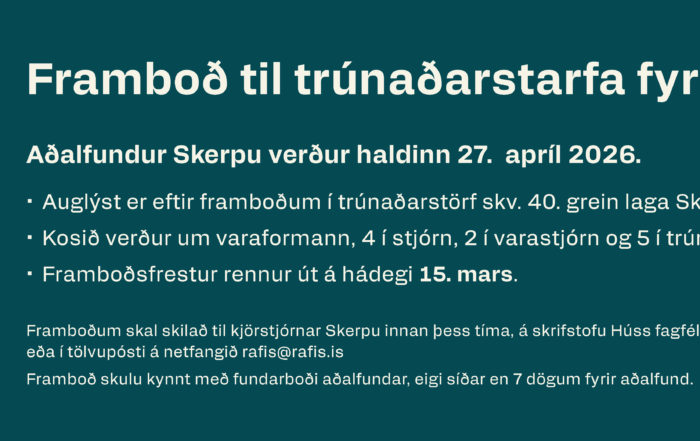 Aðalfundur Skerpu verður haldinn 27. apríl 2026. Auglýst er eftir framboðum í trúnaðarstörf skv. 40. grein laga Skerpu. Kosið verður [...]