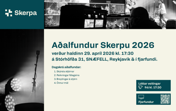 Aðalfundur Skerpu 2026 verður haldinn 29. apríl 2026 kl. 17:30 á Stórhöfða 31, SNÆFELL, Reykjavík & í fjarfundi. Dagskrá aðalfundar: [...]