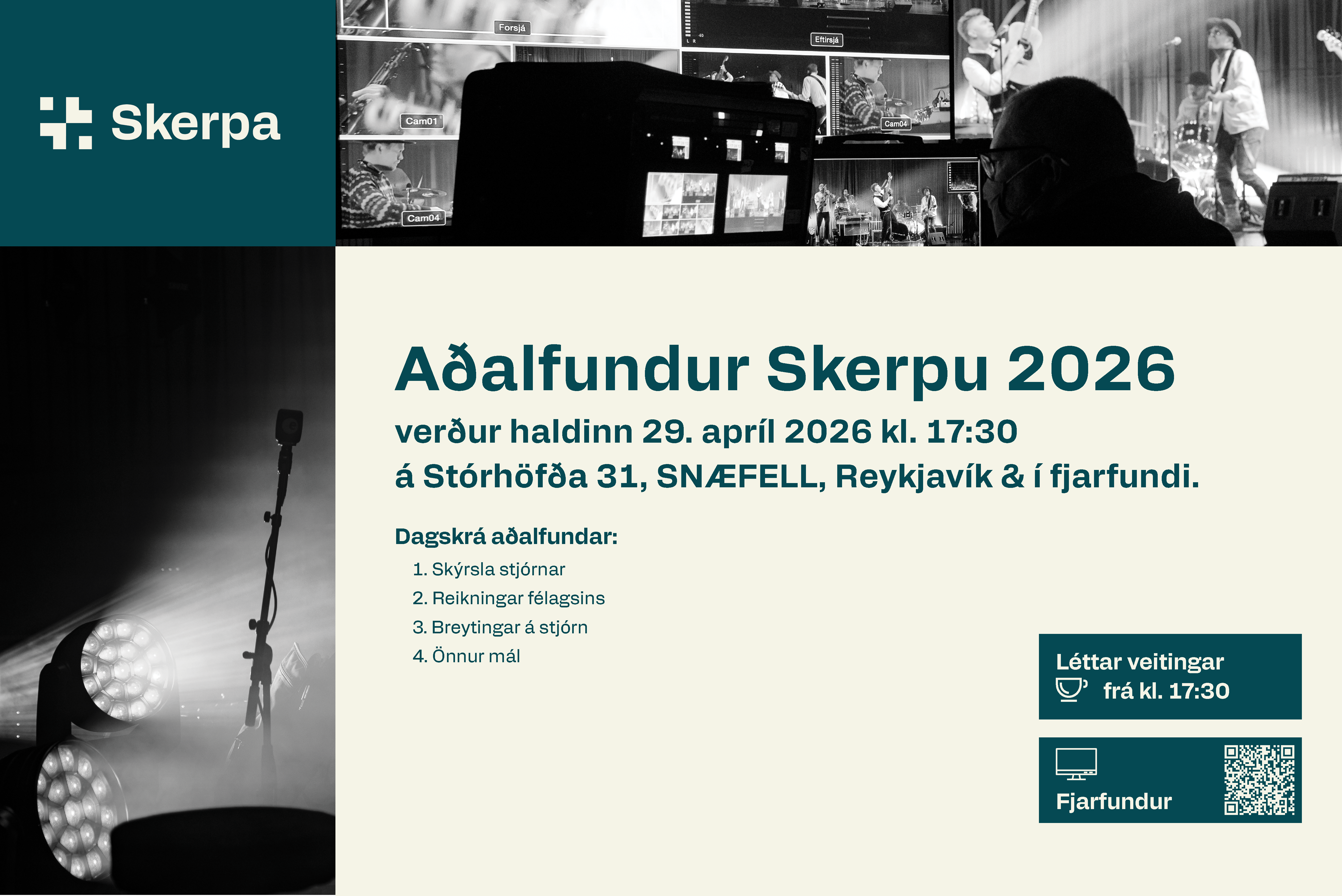 Aðalfundur Skerpu 2026 verður haldinn 29. apríl 2026 kl. 17:30